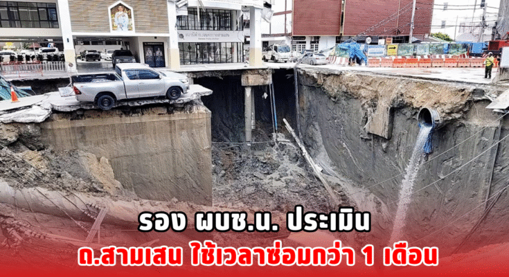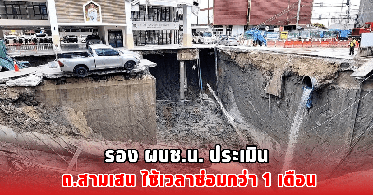 จากการประเมินสถานการณ์ในเบื้องต้น พบว่า มีเสาไฟฟ้าล้มจำนวน 2 ต้น โดยเหตุการณ์เริ่มขึ้นตั้งแต่เวลาประมาณ 05.00 น. ซึ่งเจ้าหน้าที่ตำรวจได้รับแจ้งว่าพื้นผิวถนนเกิดการทรุดตัวลึกประมาณ 10 เมตร อย่างไรก็ตาม ช่วงแรกยังไม่มีการปิดถนนทั้งหมด แต่ได้มีการ กั้นพื้นที่อันตราย เพื่อป้องกันอุบัติเหตุ