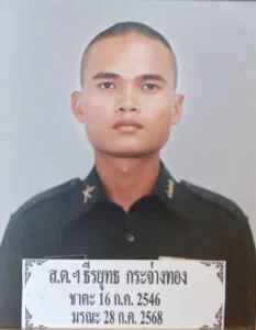 การปฏิบัติหน้าที่ของทหารในพื้นที่เสี่ยงภัย โดยเฉพาะในสถานการณ์ความไม่สงบตามชายแดนไทย – กัมพูชา เมื่อเกิดเหตุปะทะย่อมมีโอกาสเกิดความสูญเสียต่อกำลังพลอย่างหลีกเลี่ยงไม่ได้ เช่นเดียวกับ พลทหาร ธีรยุทธ กระจ่างทอง สังกัด กองพันทหารปืนใหญ่ต่อสู้อากาศยานที่ 2 กรมทหารปืนใหญ่ต่อสู้อากาศยานที่ 2 ที่ได้เสียชีวิตจากการปฏิบัติหน้าที่เพื่อปกป้องอธิปไตยของชาติ บริเวณแนวรบ ช่องตาเฒ่า อำเภอกันทรลักษ์ จังหวัดศรีสะเกษ