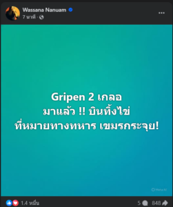 วันที่ 9 ธันวาคม 2568 มีรายงานว่า วาสนา นาน่วม ผู้สื่อข่าวสายทหารชื่อดัง โพสต์เฟซบุ๊ด ระบุว่า Gripen 2 เกลอ มาแล้ว บินทิ้งไข่ ที่หมายทางทหาร เขมรกระจุย!