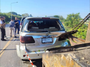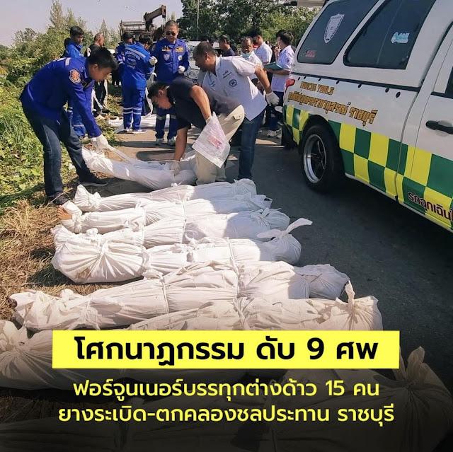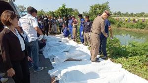 รถ SUV บรรทุกแรงงานต่างด้าว 15 คน ยางระเบิดเสียหลักตกคลองชลประทานมีแรงงานต่างด้าวเสียชีวิต 9 ราย