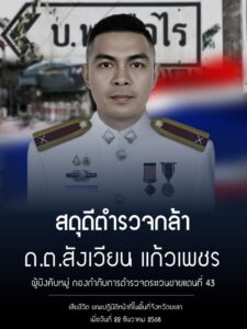 หน่วยเฉพาะกิจตำรวจตระเวนชายแดนที่ 43 ขอแสดงความเสียใจกับครอบครัว ของ พี่สังเวียน แก้วเพชร สังกัด ร้อย ตชด.433 กก.ตชด.43 ได้เสียชีวิตขณะปฏิบัติหน้าที่ในพื้นที่จังหวัดชายแดนใต้