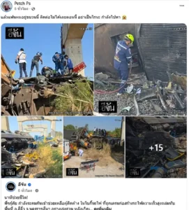 ขณะที่โลกออนไลน์ต่างติดตามสถานการณ์อย่างใกล้ชิด ผู้ใช้เฟซบุ๊กชื่อ “Petch Ps” ได้แชร์ข่าวเหตุการณ์ดังกล่าว พร้อมโพสต์ข้อความตามหาแฟนสาว ระบุว่า “แล้วแฟนผมอยู่ขบวนนี้ ติดต่อไม่ได้เลยตอนนี้ อย่าเป็นไรนะ กำลังไปหา”